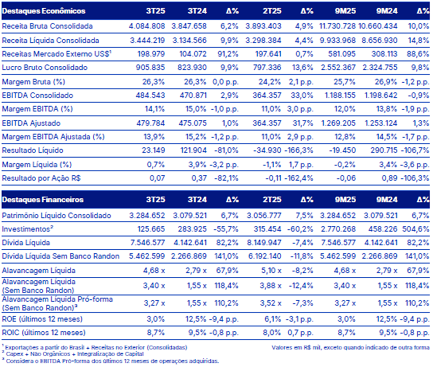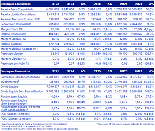 A Randoncorp registrou R$ 3,4 bilhões de receita líquida consolidada no terceiro trimestre de 2025. O valor representa aumento de 9,9% na comparação com o mesmo período do ano passado. Esse crescimento foi sustentado, principalmente, pela expansão no mercado de reposição internacional e pela retomada das vendas em diversas geografias.
